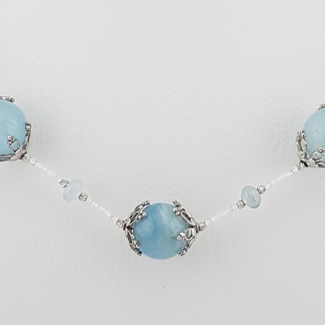 Collier en Aigue-Marines et Pierres de Lune