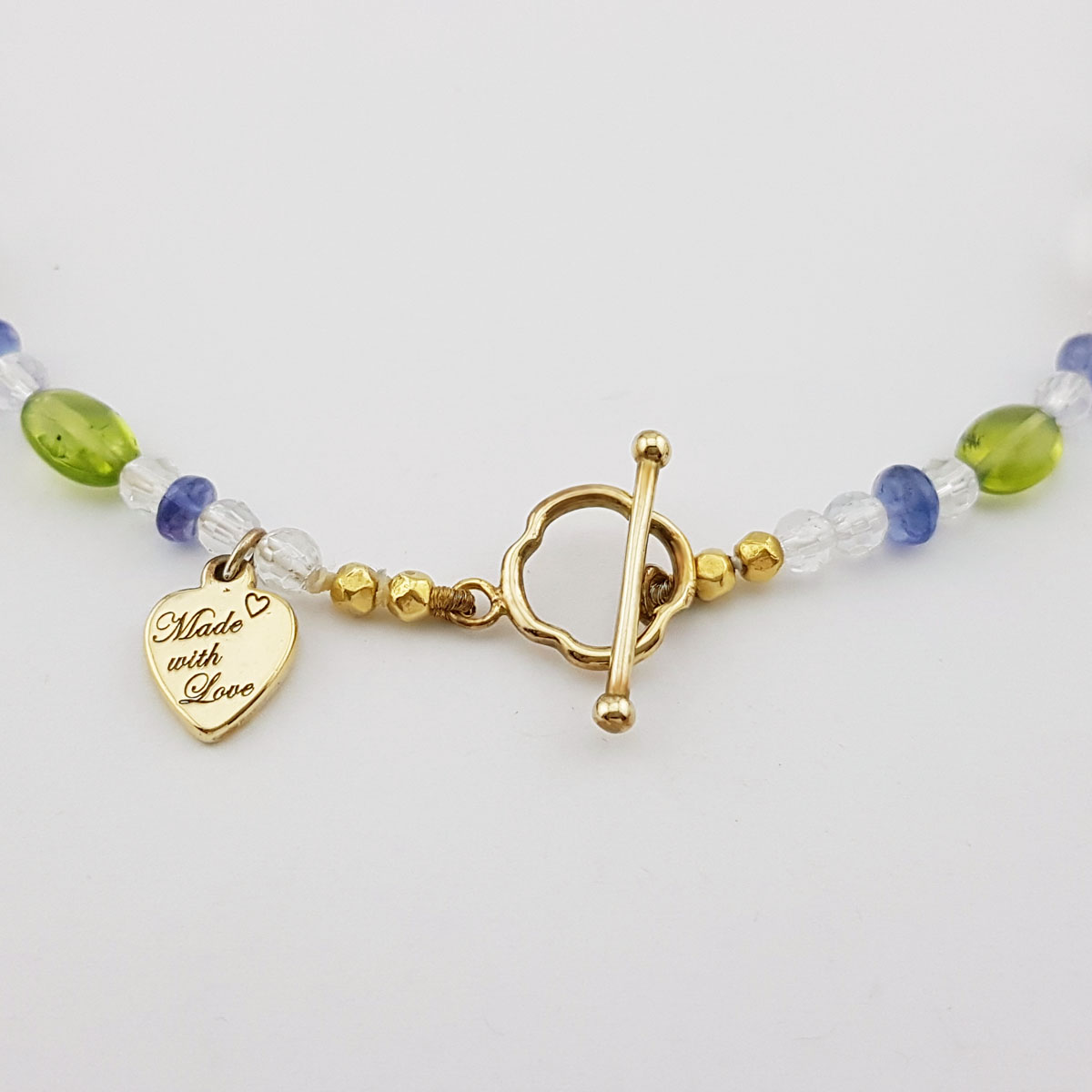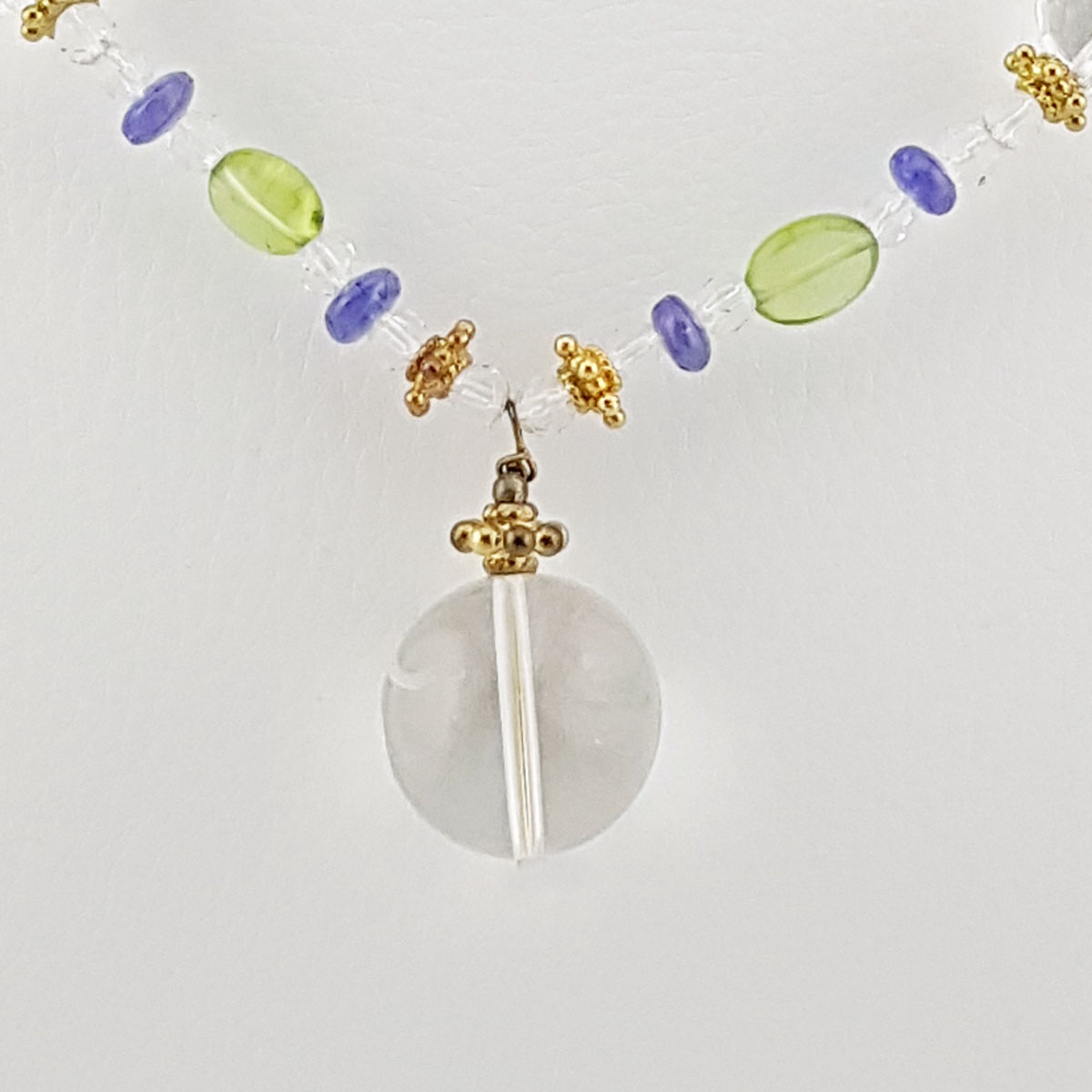Collier en Cristal de Roche, Tanzanite et Péridots
